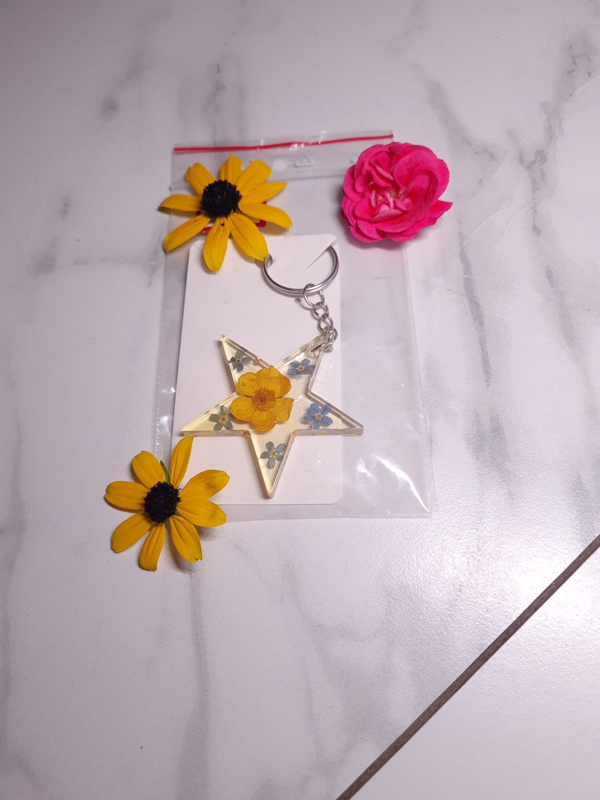 Breloczek gwiazda jaskier & niezapominajka