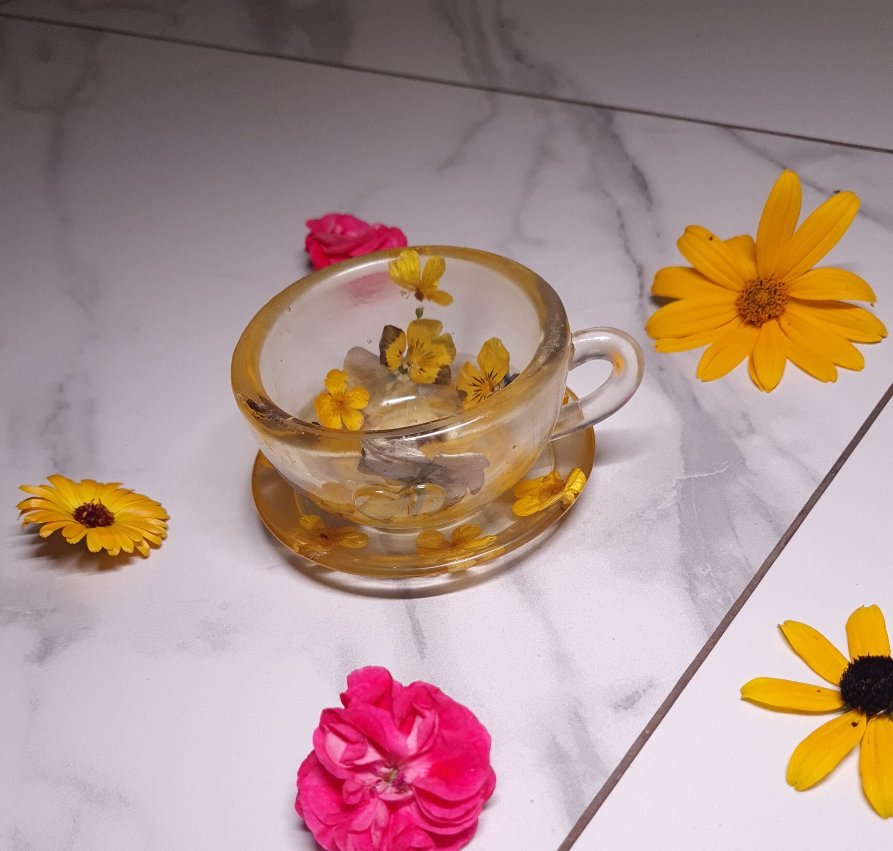 Filiżanka z żywicy ze spodeczkiem Bratek & jaskier